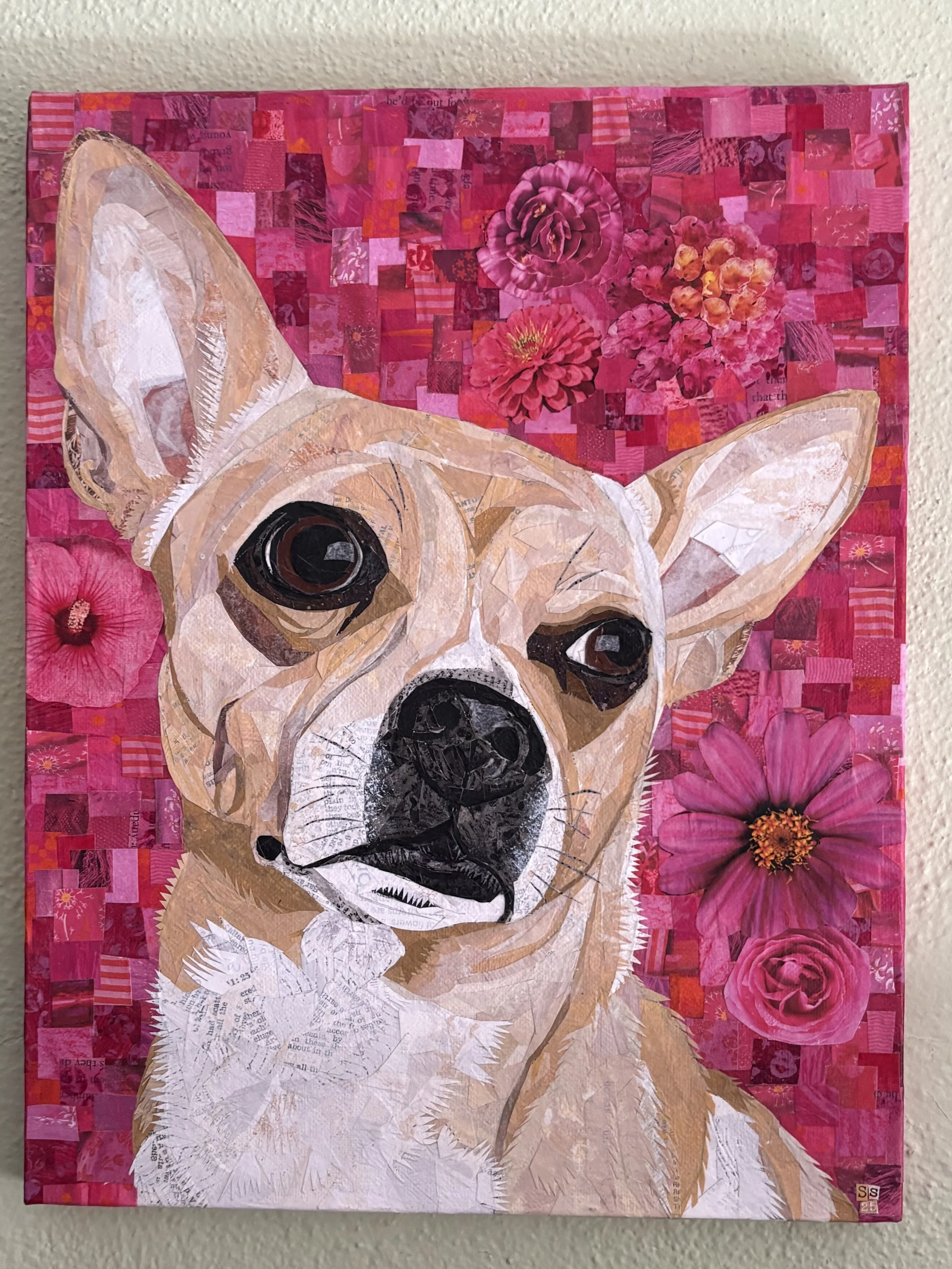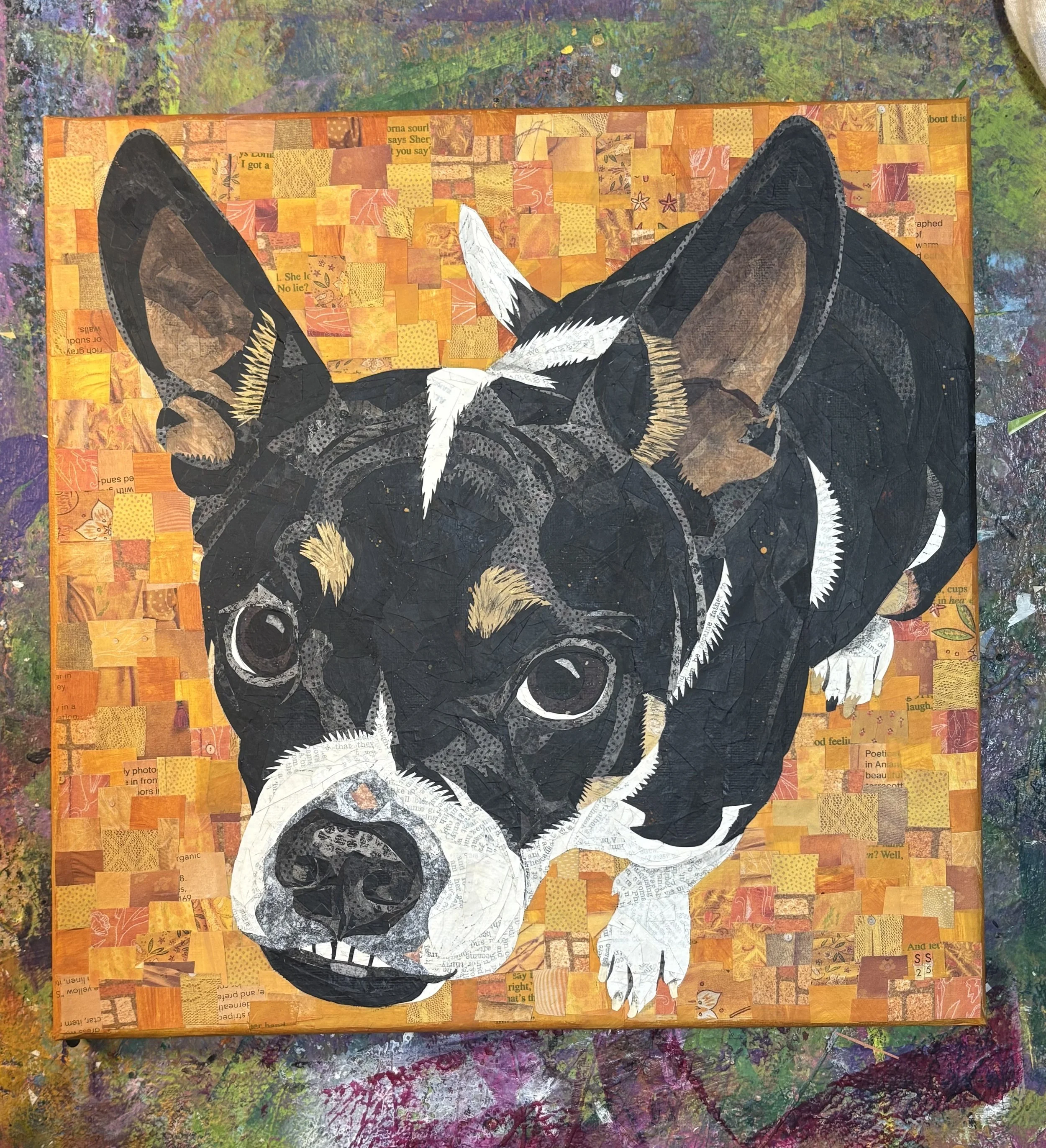 I, Sloane Solanto, am an artist in addition to being The Cheese Lady. My main media is collage although there is the occasional painting thrown in the mix. I use an assortment of found papers as well as ones I hand paint. Prints and available originals will be at the shop and can be shipped upon request.